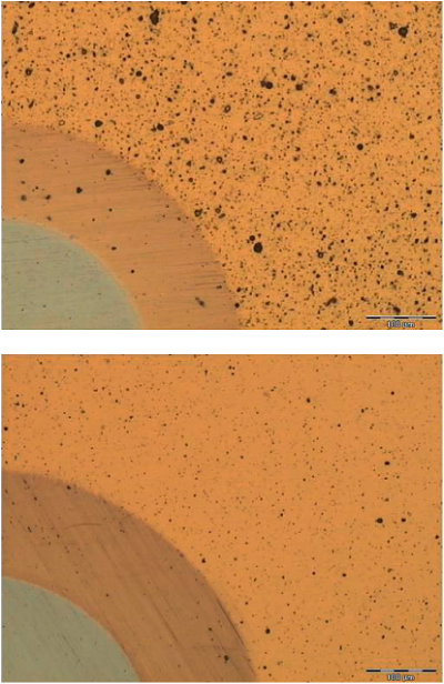 Surface with calotte grinding of a standard TiN (top) and a TiN-ultrafine.